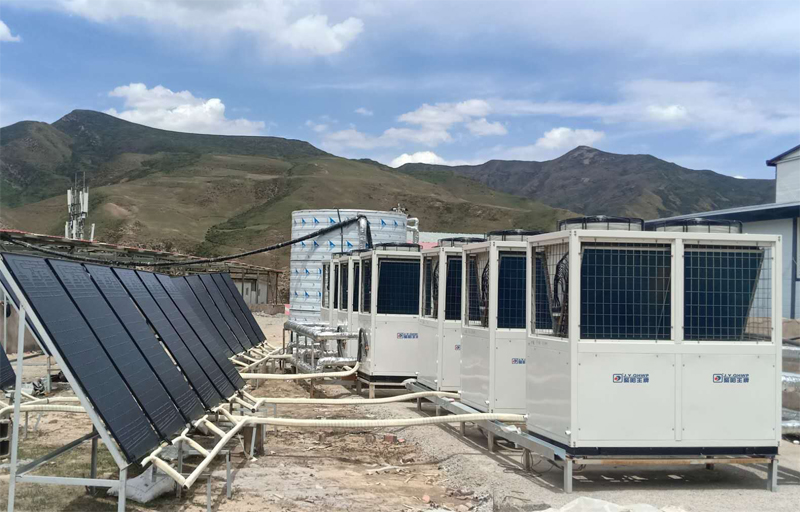 中鐵三局光伏板熱泵低溫采暖2萬平采用聚陽公司最新超低溫光伏熱泵采暖,能效高,化霜快,冬天采暖效果好,獲得客戶好評不斷。