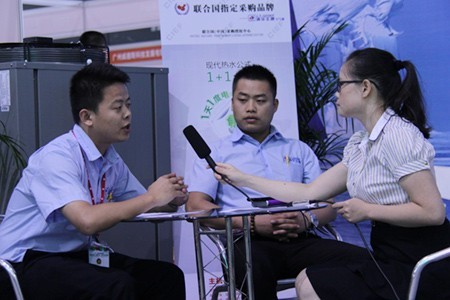 清華王牌空氣能企業代表接受慧聰熱泵網編輯采訪