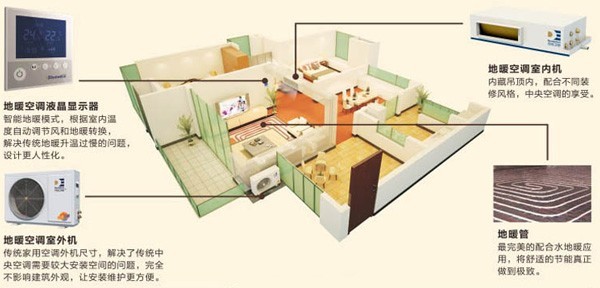 地暖機輻射供暖方式較對比其他供暖方式熱效率高,另外地暖更大的散熱面積使得采暖所需水溫更低,設備的效率更高,同時傳送過程中熱量損失小,更加節能。同時,地暖空調設有液晶顯示器,采取智能地暖的模式,機器能夠根據室內溫度自動調節風和地暖之間的轉換,解決傳統地暖升溫過程慢的問題,設計更加人性化,符合現代人生活的智能化節奏。