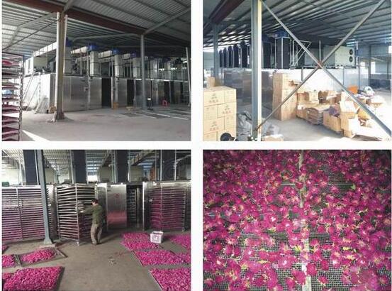 玫瑰花干燥前的護色處理:有業界人士在對花進行干燥前,進行護色處理,具體實施辦法為可改花材細胞液內的PH值,或高溫殺青,以增加色素的穩定性,以及殺滅或鈍化物料內的酶活性來進行護色處理。主要辦法有高溫蒸汽、微波殺青、熱燙機等辦法。