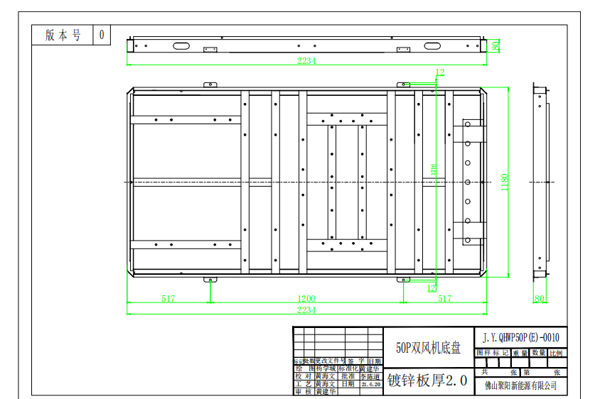 聚陽王牌空氣能熱泵K850-G(10P特價機)底盤圖紙 10P空氣能熱泵底盤設計圖紙