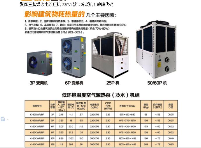 聚陽王牌煤改電雙壓機23EVI款(冷暖機)故障代碼
