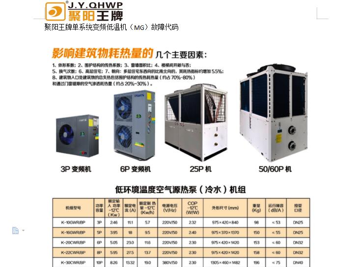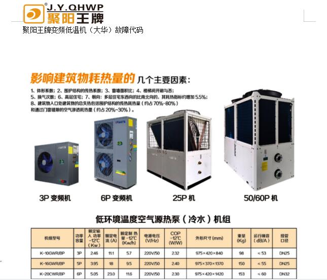 聚陽王牌空氣能三聯供Q28款故障代碼