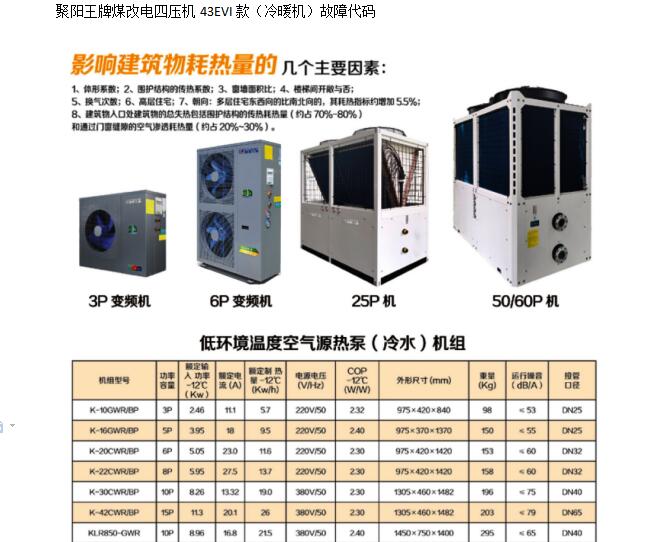 聚陽王牌煤改電四壓機43EVI款(冷暖機)故障代碼