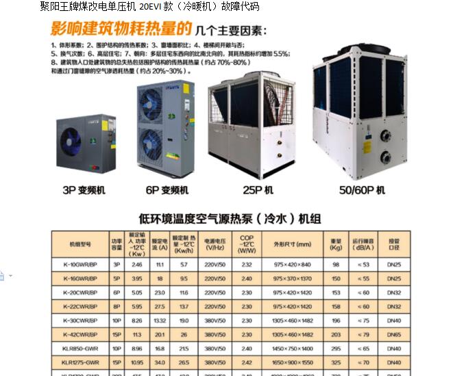 聚陽王牌煤改電單壓機20EVI款(冷暖機)故障代碼