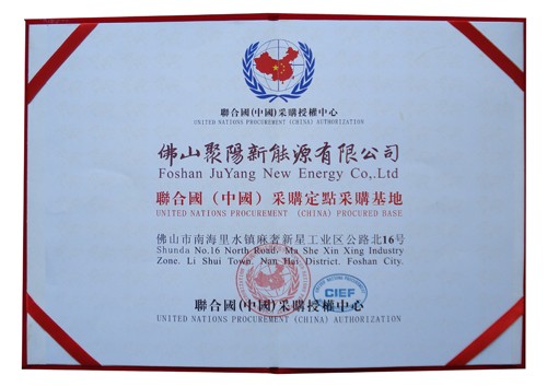 熱烈慶祝佛山聚陽新能源有限公司榮獲“聯合國(中國)采購定點采購基地”稱號。