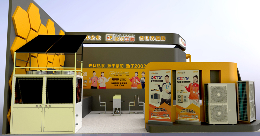 聚陽公司此次花重金參與投資50多萬參與本次熱泵展,展位128平方米, 展位中設有 內設5S休息區,技術交流區,產品展示區,有咖啡 奶茶、茶點心,是真正熱泵人的休息驛站