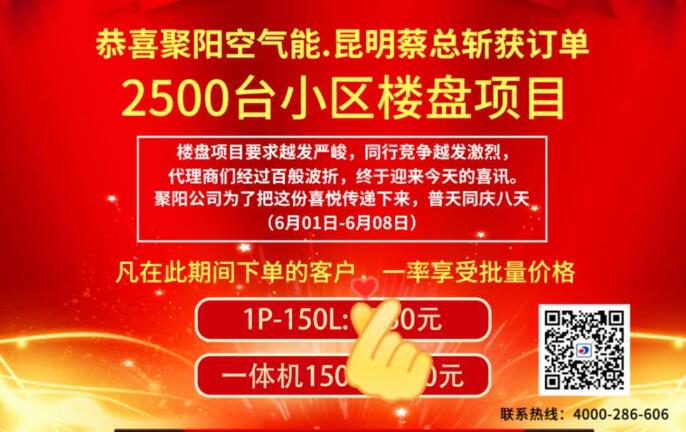 近日來聚陽公司喜訊頻頻,不斷中標一些地區的政府采購項目,在工程項目上收割了豐碩成果,大大提振聚陽眾多經銷商的信心,為聚陽空氣能長遠發展提供了內生動力。
